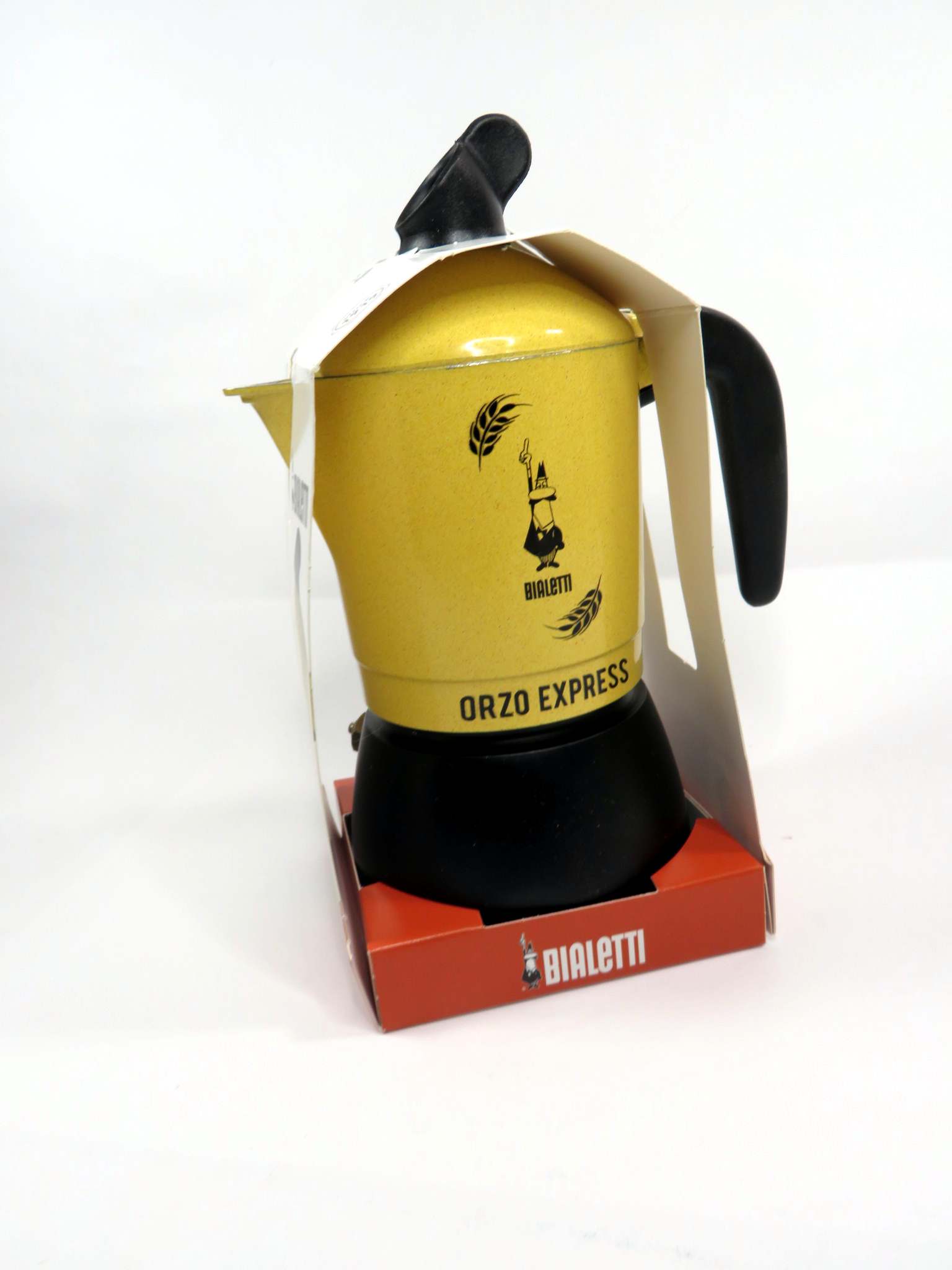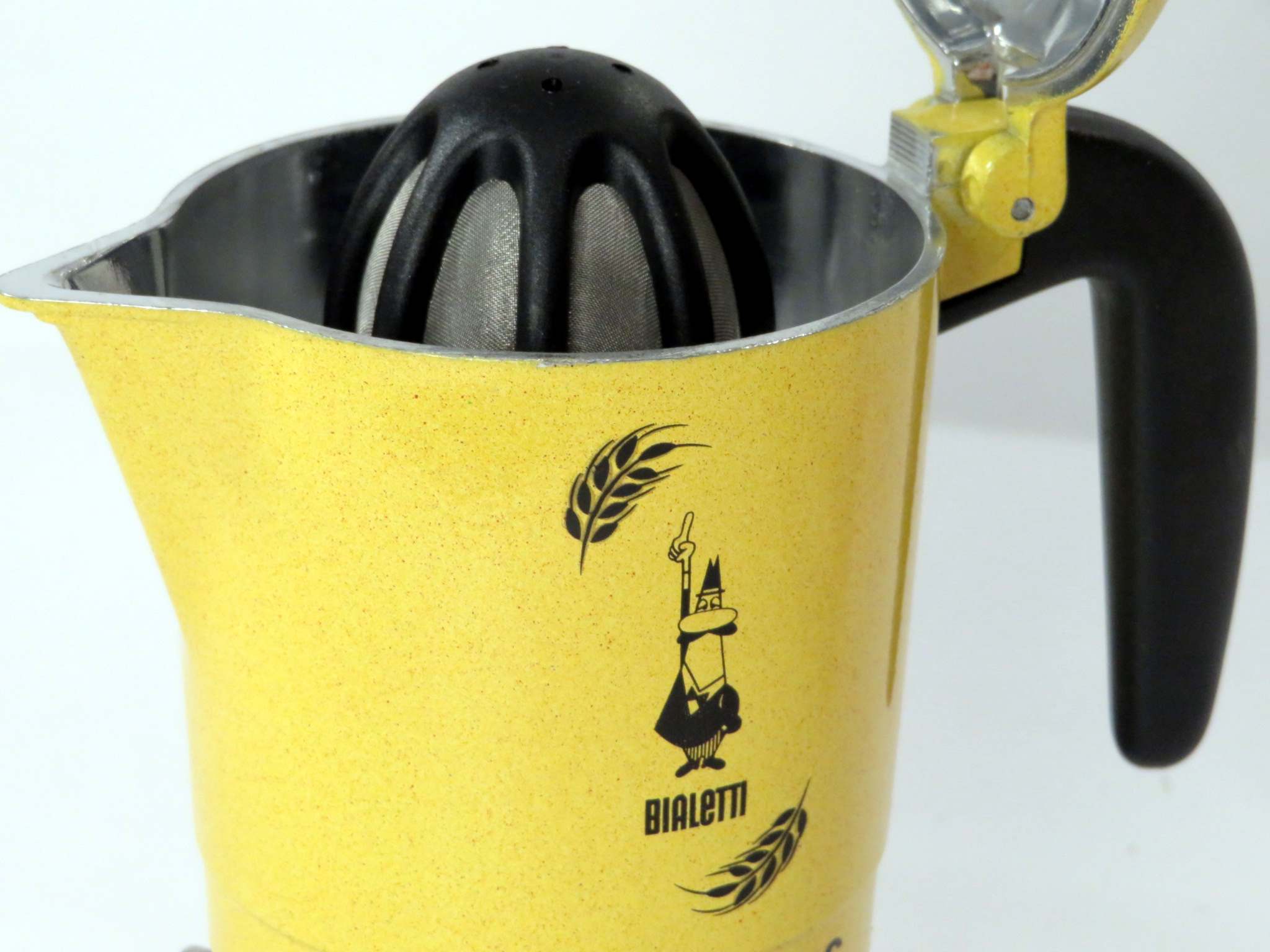 Caffettiera Bialetti per l'orzo, filtro speciale adatto alla bevanda, retina antispruzzo sul beccuccio e sfiato di sicurezza. Utilizzare una caffettiera normale per il caffè di orzo può risultare pericoloso, questa invece è studiata appositamente per la sicurezza. Inconfondibile colorazione con base nera bicchiere superiore colorato giallo con l'inconfondibile marchio originale Bialetti. Capacità 4 tazze. Imbuto, guarnizione e filtro debbono essere acquistati specificatamente per questo modello.