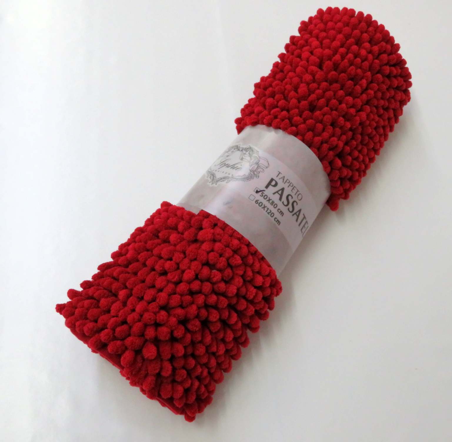 Il tappeto Passatello in poliestere 100% misura 50x80, colore rosso bordeaux, lavabile in lavatrice a 40 gradi è morbidissimo al tatto, una piacevole sensazione appoggiando i piedi nudi. Adatto all'uso in camera e bagno, buona asciugatura, fondo antiscivolo.