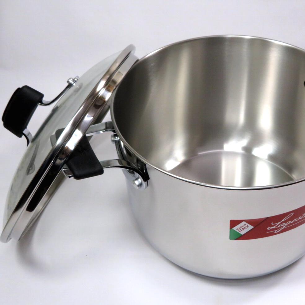 Pentola in acciaio inox con doppio fondo, ideale per il primo approcio alla cucina, essenziale e moderna, manici atermici rivestiti di silicone e pratico coperchio in vetro temperato con valvola di sfogo del vapore.Il fondo di questa pentola ne esalta le prestazioni, distribuendo in modo omogeneo il calore verso l'esterno avvolgendo i cibi in un calore morbido.