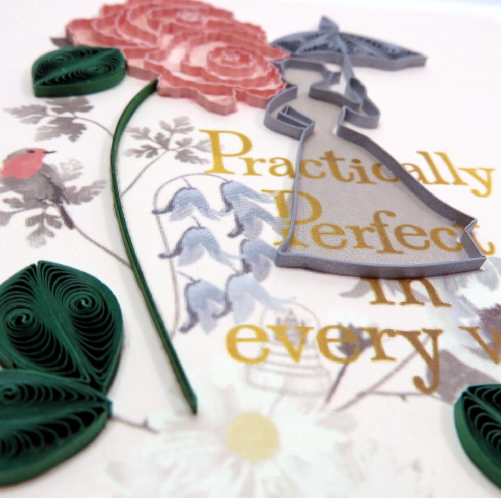 Biglietto augurale 'Mary Poppins' in filigrana di carta, ideati da origamo Italia e costruiti con maestria nei laboratori in Vietrnam dove il suo titolare sostiene progelle di solidarietà con la popolazione della fondazione Christina Noble. Il biglietto in filigrana regala emozioni, toccandolo con mano si puo notare la manualità nell'esecuzione. All'interno un foglio bianco per scrivere il messaggio, busta bianca. Dimensioni 10X10cm.