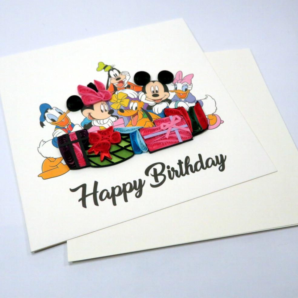 Biglietto augurale 'MICKEY BIRTHDAY' in filigrana di carta, ideati da origamo Italia e costruiti con maestria nei laboratori in Vietrnam dove il suo titolare sostiene progelle di solidarietà con la popolazione della fondazione Christina Noble. Il biglietto in filigrana regala emozioni, toccandolo con mano si puo notare la manualità nell'esecuzione. All'interno un foglio bianco per scrivere il messaggio, busta bianca. Dimensioni 10X10cm.