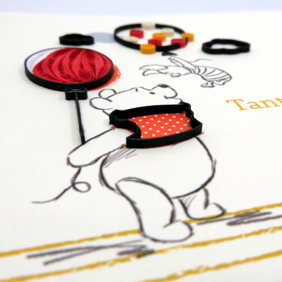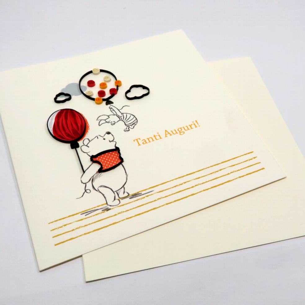 Biglietto augurale 'Winnie e Pimpi' in filigrana di carta, ideati da origamo Italia e costruiti con maestria nei laboratori in Vietrnam dove il suo titolare sostiene progelle di solidarietà con la popolazione della fondazione Christina Noble. Il biglietto in filigrana regala emozioni, toccandolo con mano si puo notare la manualità nell'esecuzione. All'interno un foglio bianco per scrivere il messaggio, busta bianca. Dimensioni 10X10cm.