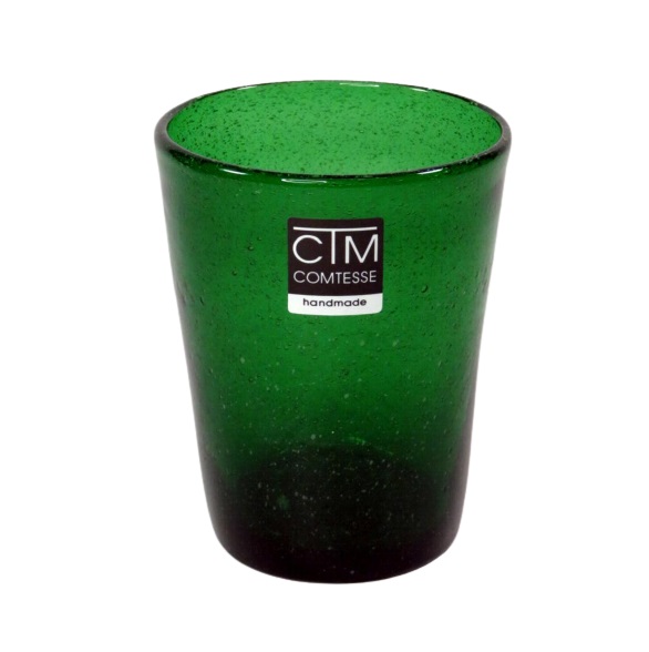 Bicchieri colorati con microbollicine e forma conica del bicchiere, impilabili e lavabili in lavastoviglie, resistenti all'effetto opacità provocato dal lavaggio meccanico.