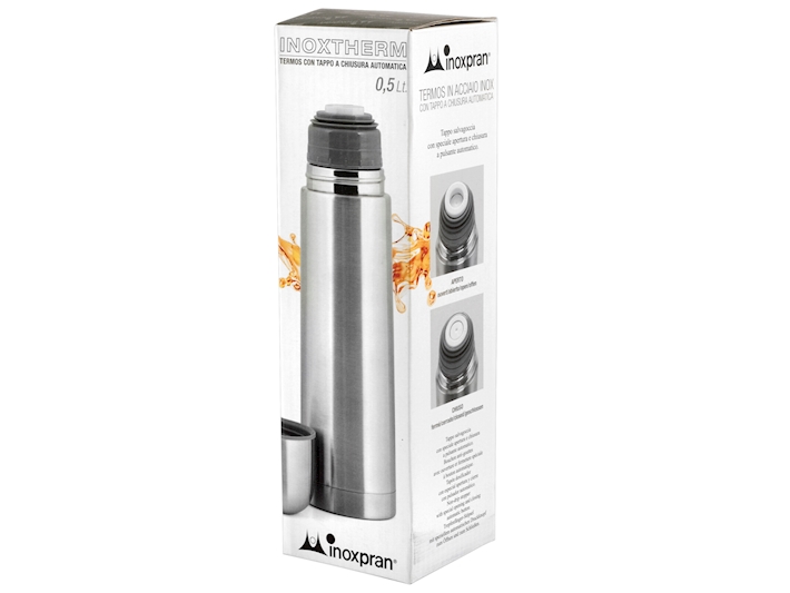 Termos in acciaio con doppia camera di acciaio e camera di isolamento, tappo a pulsante apri e chiudi veloce e salva temperatura