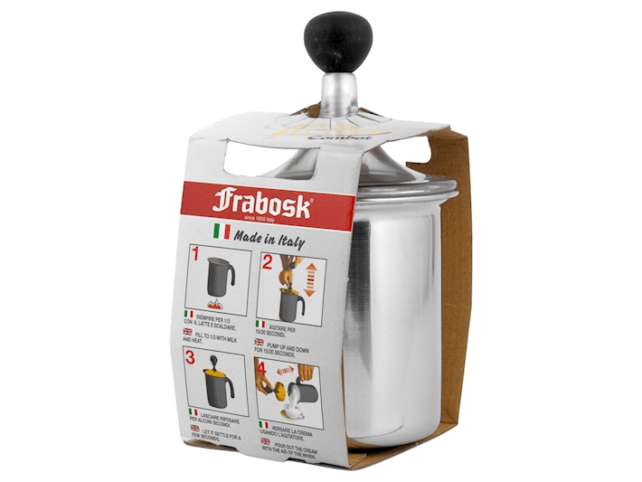 Pentolino in acciaio leggero per la preparazione di un abbondante crema cappuccino. Basta riscaldare un pò di latte con l'aggiunta di un pò di caffè (non obbligatorio) e stantuffare per circa 10 volte il filtro apposito in dotazione. Un ottima crema stupirà il palato.