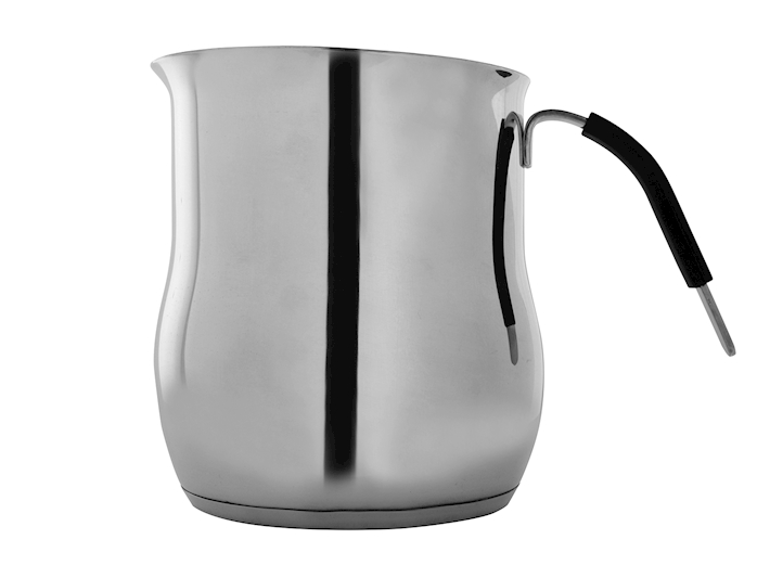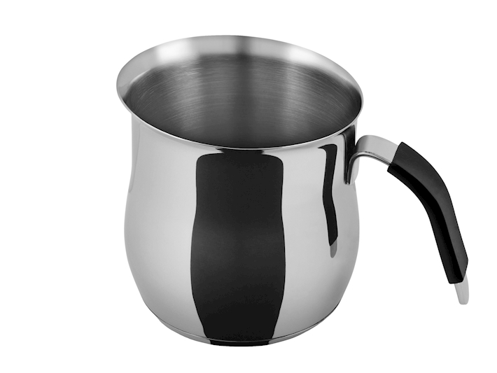 Pentolino in acciaio da 750cc per riscaldare o cuocere the, latte, minestrine ecc, utilizzabile anche nel piano ad induzione. Fondo con buona distribuzione termica del calore, manico in silicone distanziato dal pentolino per non scottarsi.