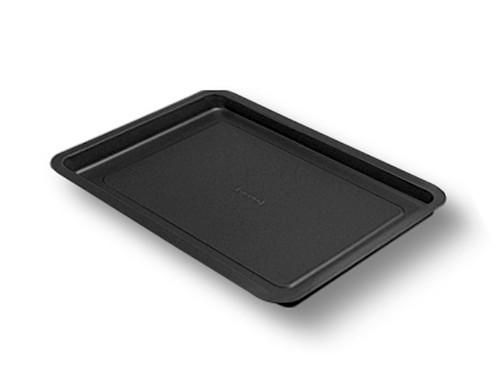 Teglia antiaderente per forno con nervature sul fondo e ribordature sul contorno per resistere alla deformazione causata dal riscaldamento nel forno. Ideale per cottura di pizze, resistente ai graffi (non utilizzare coltelli o simili al suo interno). Non adatto a cottura con piano ad induzione e al lavaggio in lavastoviglie. Misure 26x37xh2,5cm