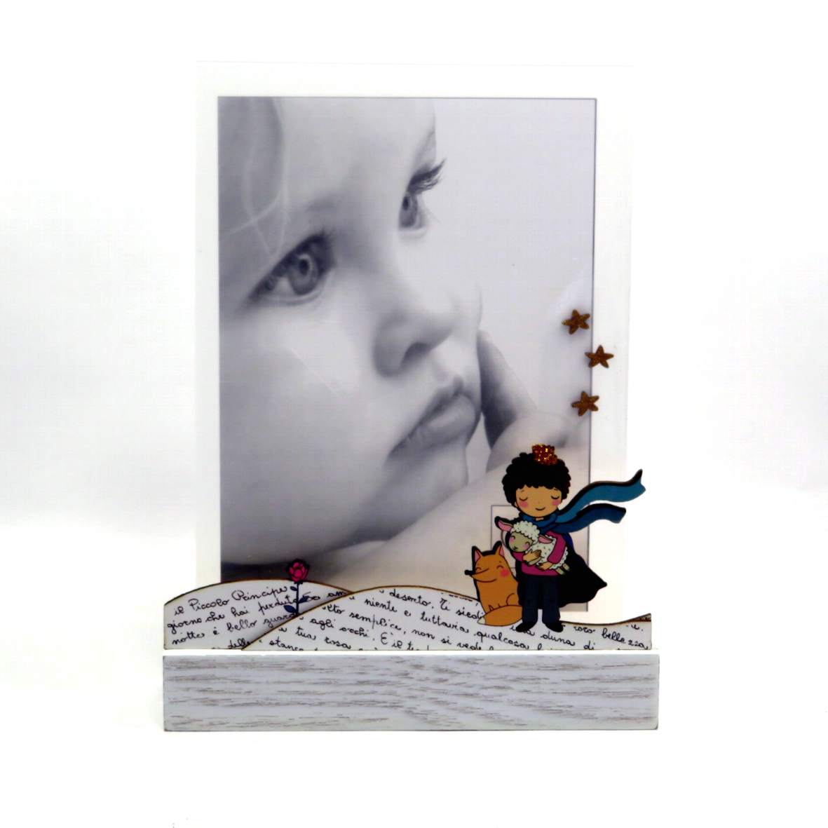 Cornice con base in legno con applicazione di cappuccetto rosso con i nani e la strega cattiva. Porta fotografie in plexiglass leggero per fotografie 13x18 verticali. DIMENSIONI: 18X3,5XH24cm