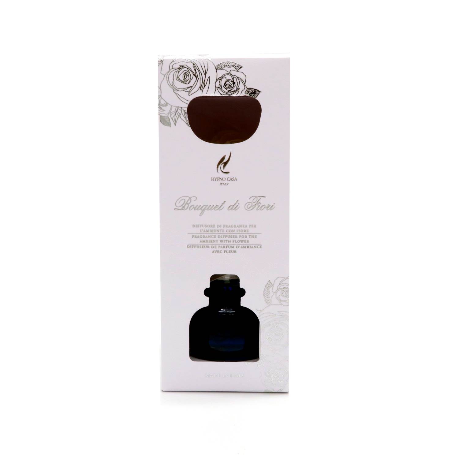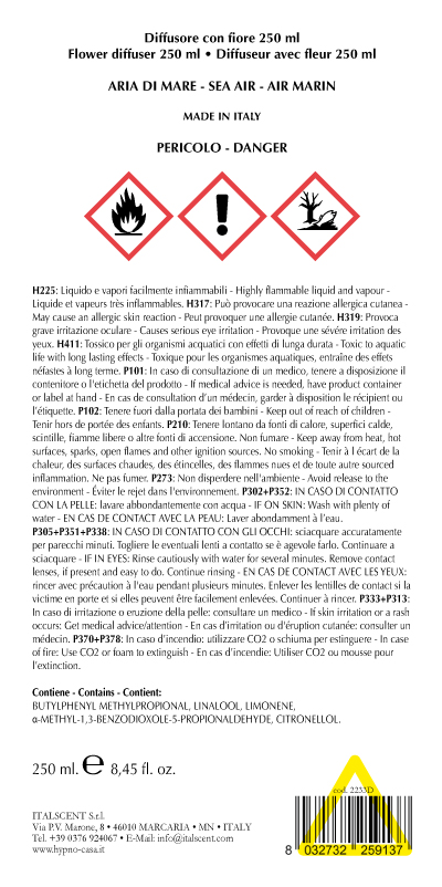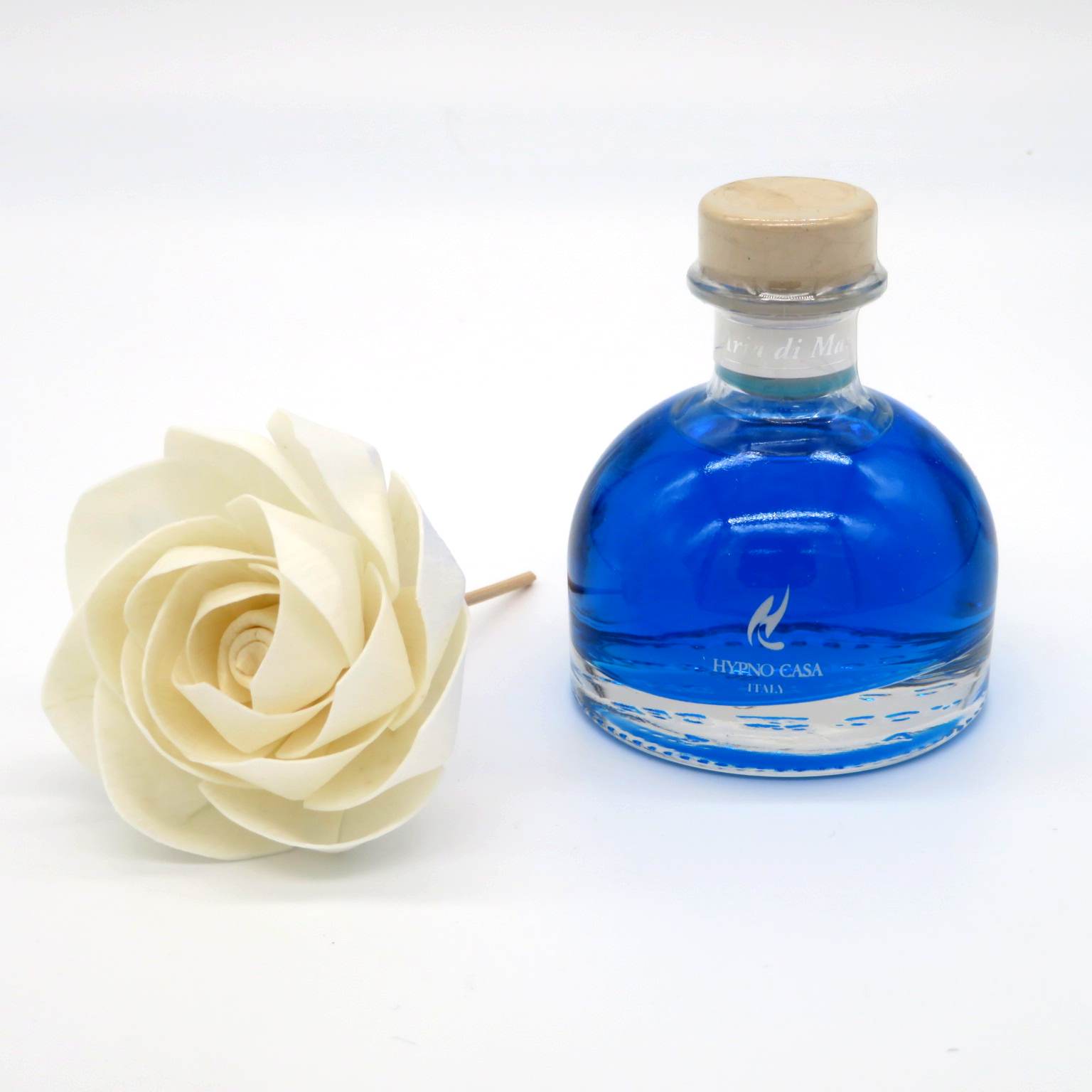 Diffusore di profumo per ambiente, con fiore in carta sostenuto da un astina in legno che si intinge nel profumo leggero e fresco che ricorda Aria di mare. La rosa diffonde il profumo con i suoi petali che ne assorbono oltre al profumo anche il colore. La capacità del contenitore è di 250ml. Il prodotto è naturale, dopo il completo assorbimento il fiore continuerà a profumare. Una volta terminato il prodotto si possono acquistare le ricariche di profumo e il fiore di carta. DIMENSIONI: D9 H11 solo contenitore, H16cm con fiore.