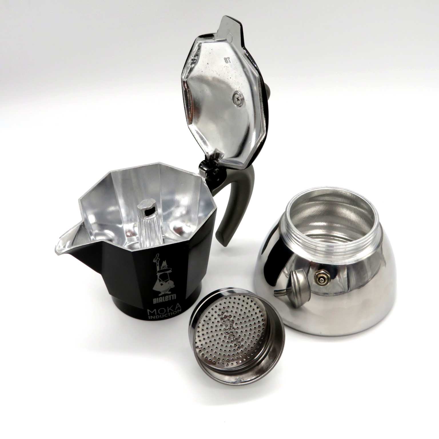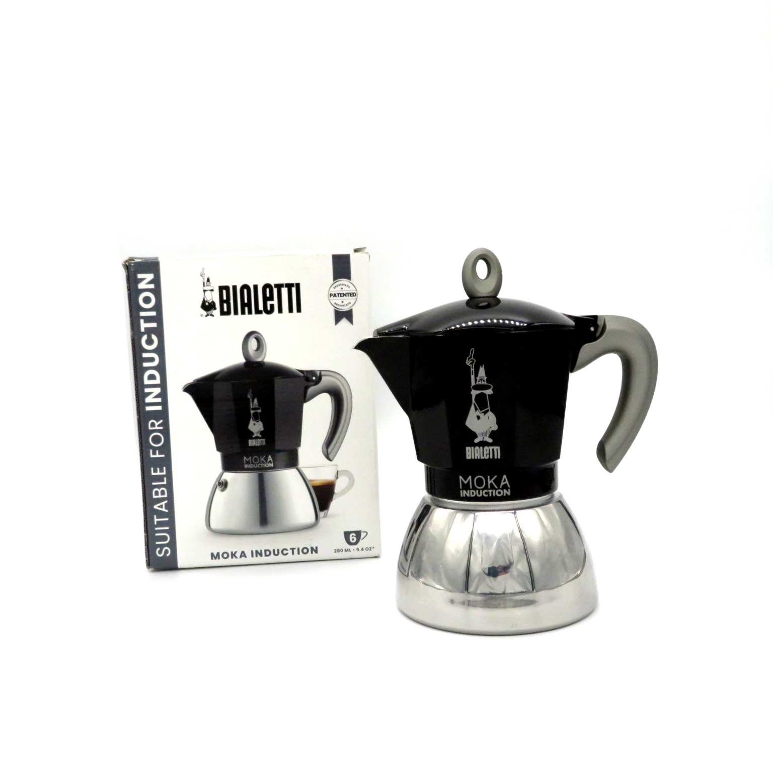 Caffettiera con base in acciaio con sistema brevettato, funzionamento anche su piani ad induzione, capacità 280ml pari a 6 tazze di caffé. La parte superiore è finemente colorata NERO con l'inconfondibile marchio Bialetti. DIMENSIONI: 18X11XH21cm. Diametro base 12cm