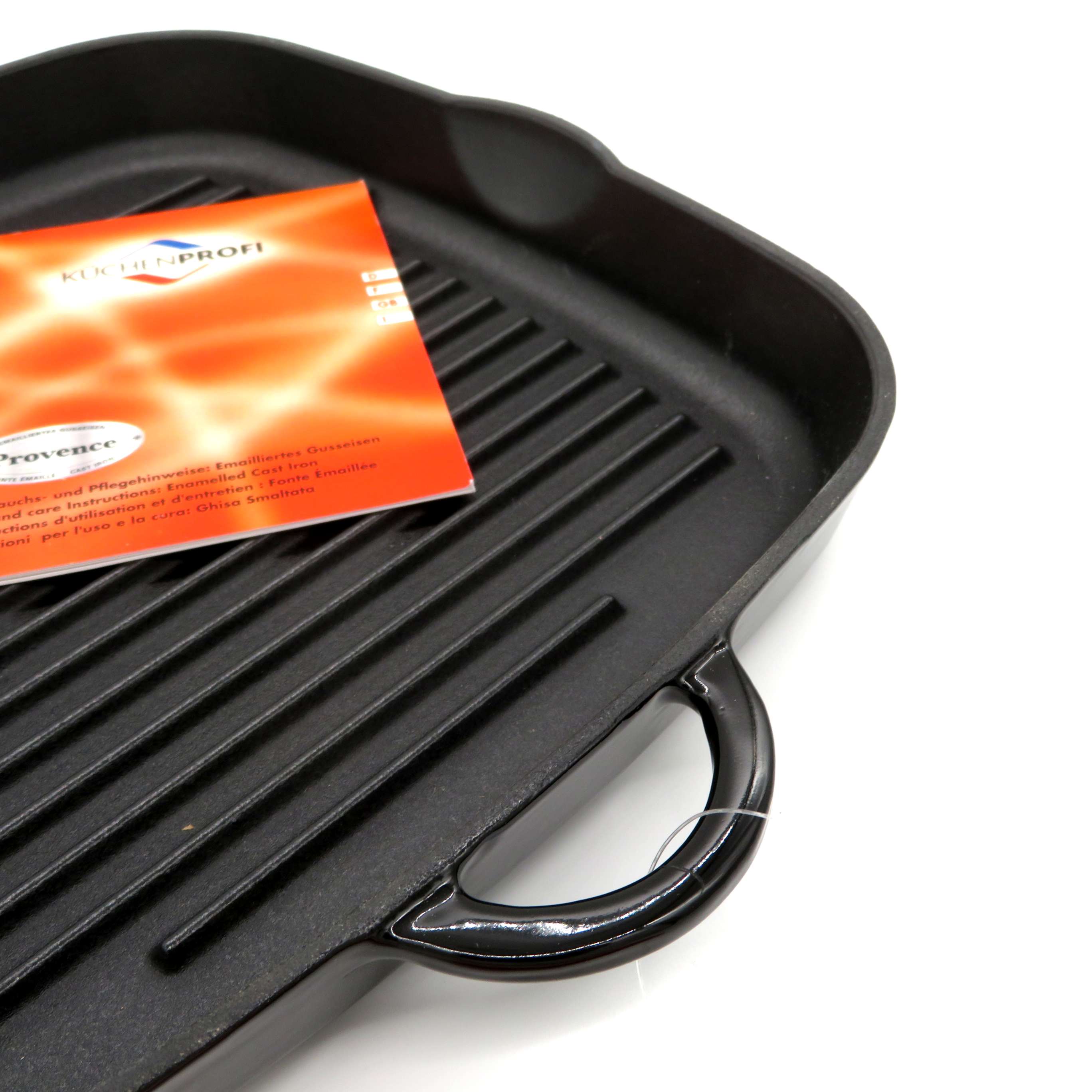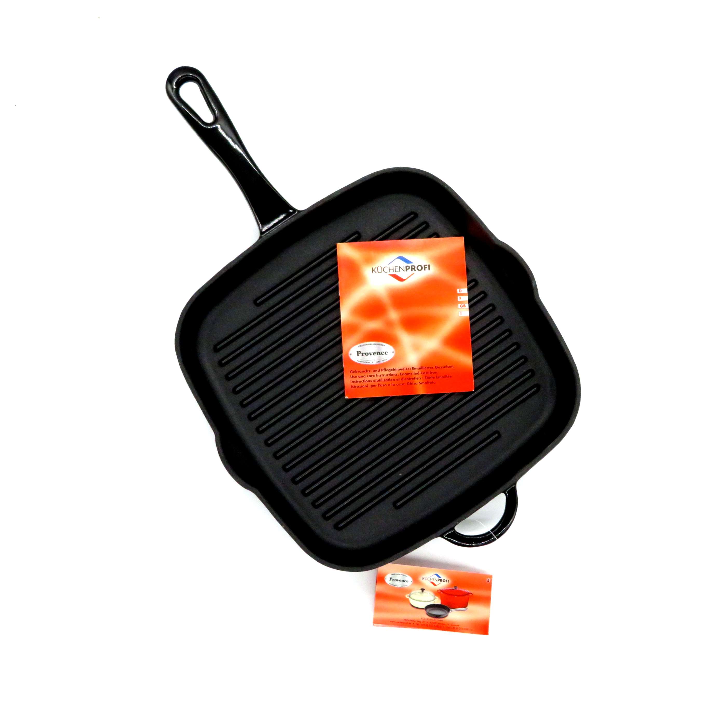 Bistecchiera quadrata 26x26cm in ghisa pesante di Kuchenprofi, con smalto particolarmente robusto e pregiato, efficienza energetica grazie alla capacità di accumulo termico e alla distribuzione del calore ottimale.