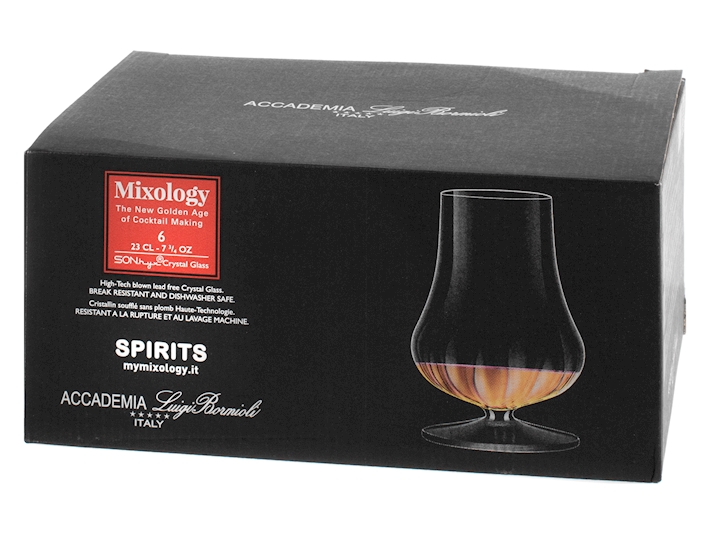 Calice in vetro sonoro superiore soffiato e senza piombo, resistente alle rotture a ai lavaggi in lavastoviglie, capacità 23cl, gambo corto, la particolare forma della coppa esalta i profumi del liquore. Trasparenza perfetta. DIMENSIONI: D8XH11cm