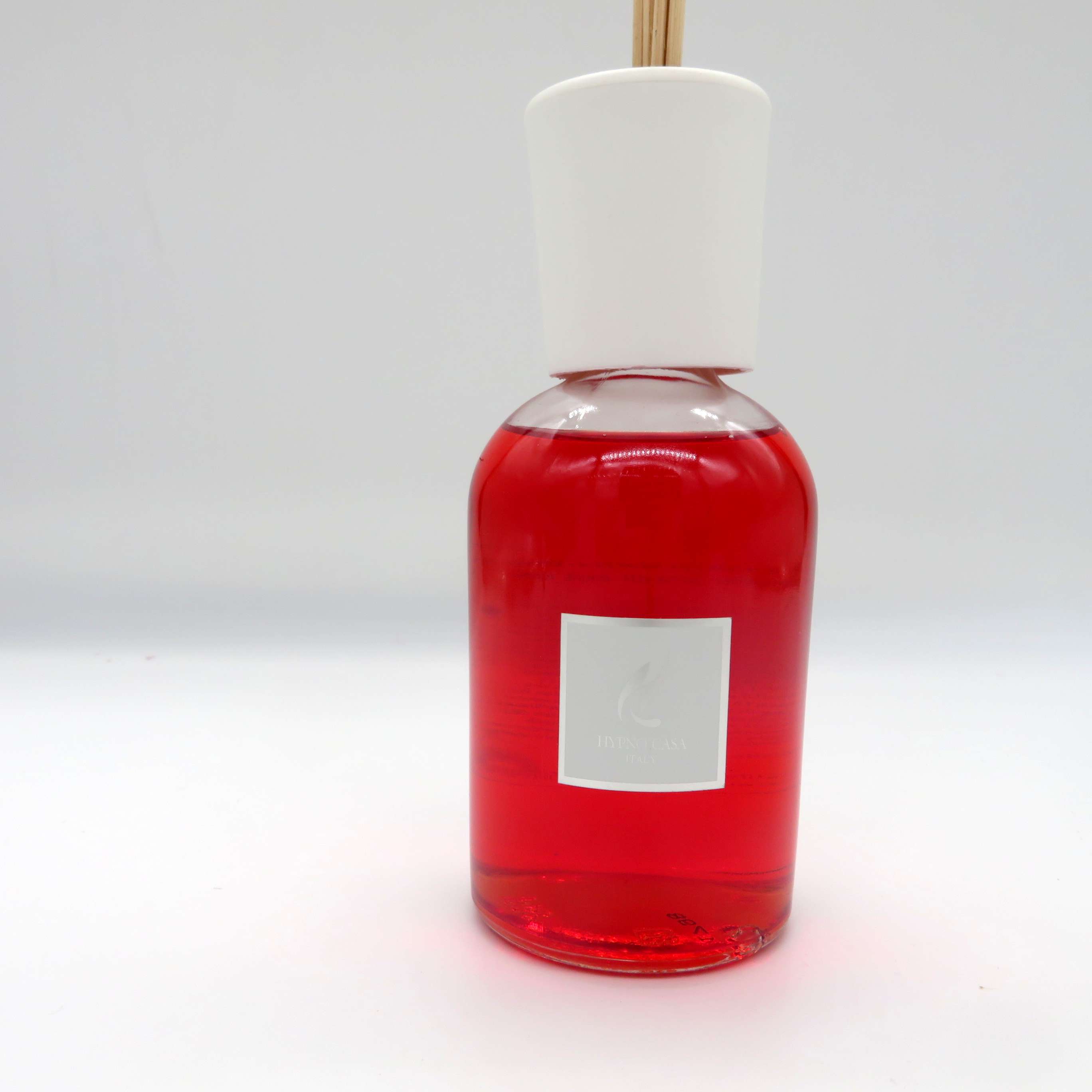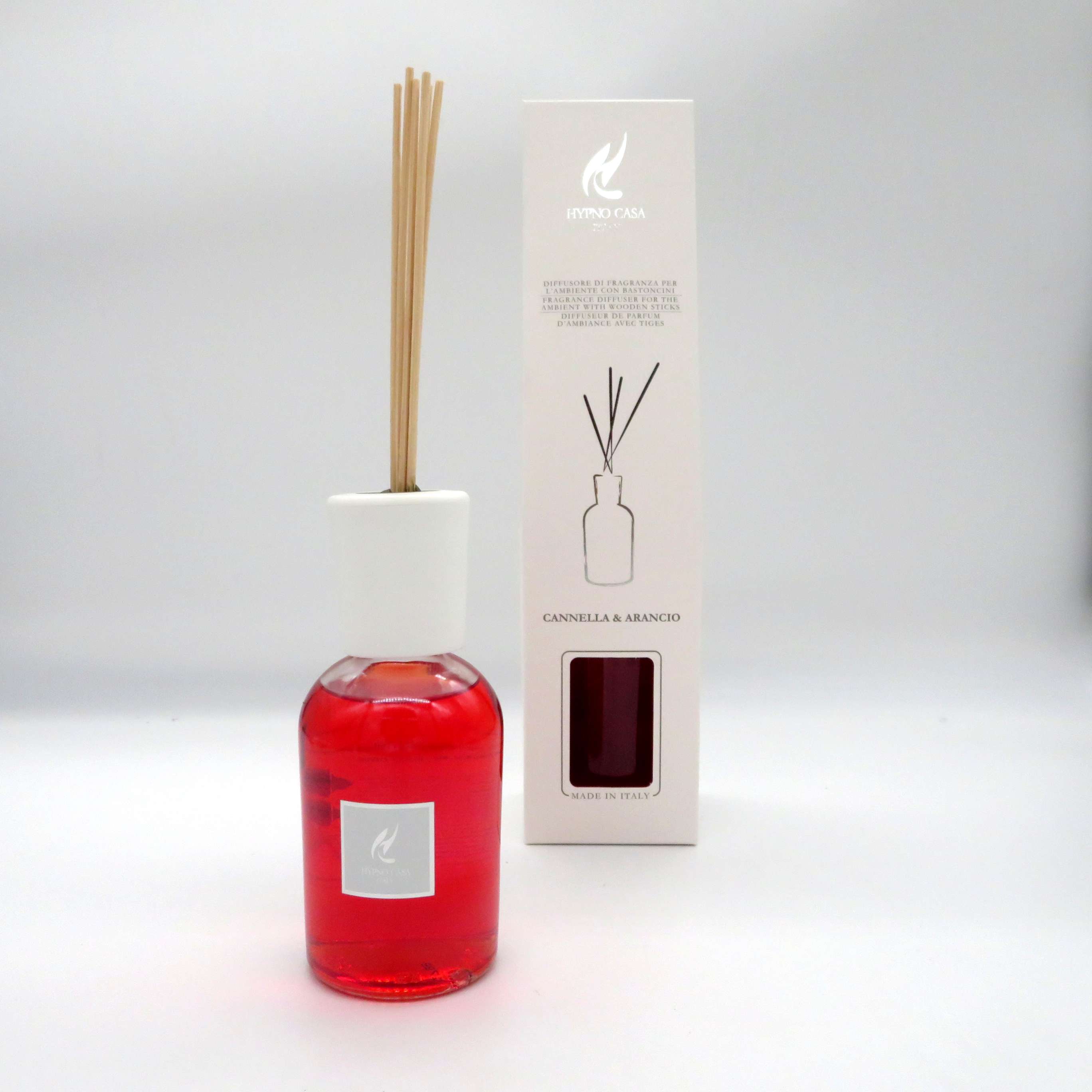 Ricarica di fragranza CANNELLA ARANCIO per diffusori di profumo a bastoncino, 250ml, descrizione olfattiva Agrumata-Speziata, colore rosso. Versare il contenuto del flacone all'interno del contenitore, immergere i bastoncini-fiore; mentre il fiore assorbe il profumo da se, i bastoncini debbono essere girati ogni qualche giorno per sentire sempre intensamente la fragranza diffondersi nell'ambiente. DIMENSIONE barattolo: 6x4xh13,5