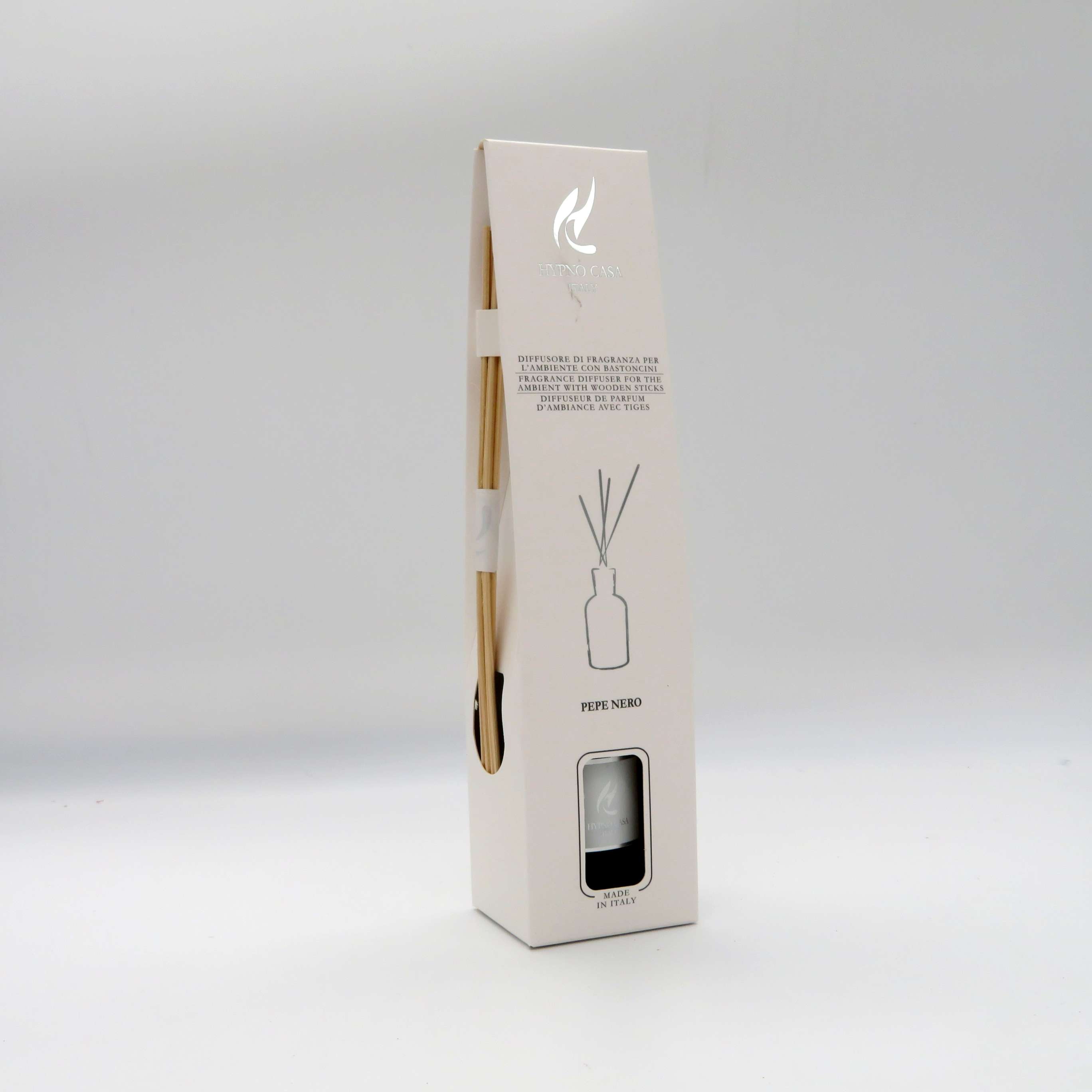 Ricarica di fragranza PEPE NERO per diffusori di profumo a bastoncino, 500ml, colore nero. Versare il contenuto del flacone all'interno del contenitore, immergere i bastoncini-fiore; mentre il fiore assorbe il profumo da se, i bastoncini debbono essere girati ogni qualche giorno per sentire sempre intensamente la fragranza diffondersi nell'ambiente. DIMENSIONE barattolo: 9x5xh17