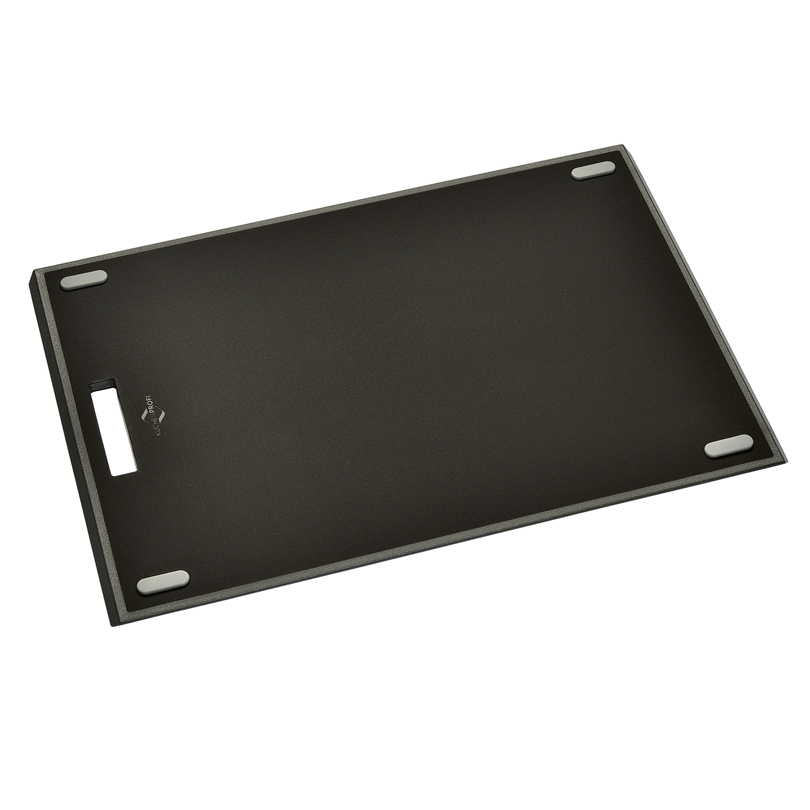 Tagliere Primus in resina nera con bordi arrotondati, solo 1 cm di altezza. La superficie strutturata conferisce maggiore aderenza anche quando è bagnata. Il tagliere può essere utilizzato su ambo i lati. Pratici piedini antiscivolo e maniglia per facile presa. Non provoca danni alla lama del cotello. Lavabile in lavastoviglie.