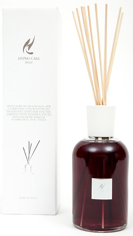Diffusore di profumo per ambiente, con bastoncini in legno che si intingono nel profumo MOSTO D'AUTUNNO. La capacità del contenitore è di 1LT.Colore marron scuro. Una volta terminato il prodotto si possono acquistare le ricariche di profumo e i bastoncini.