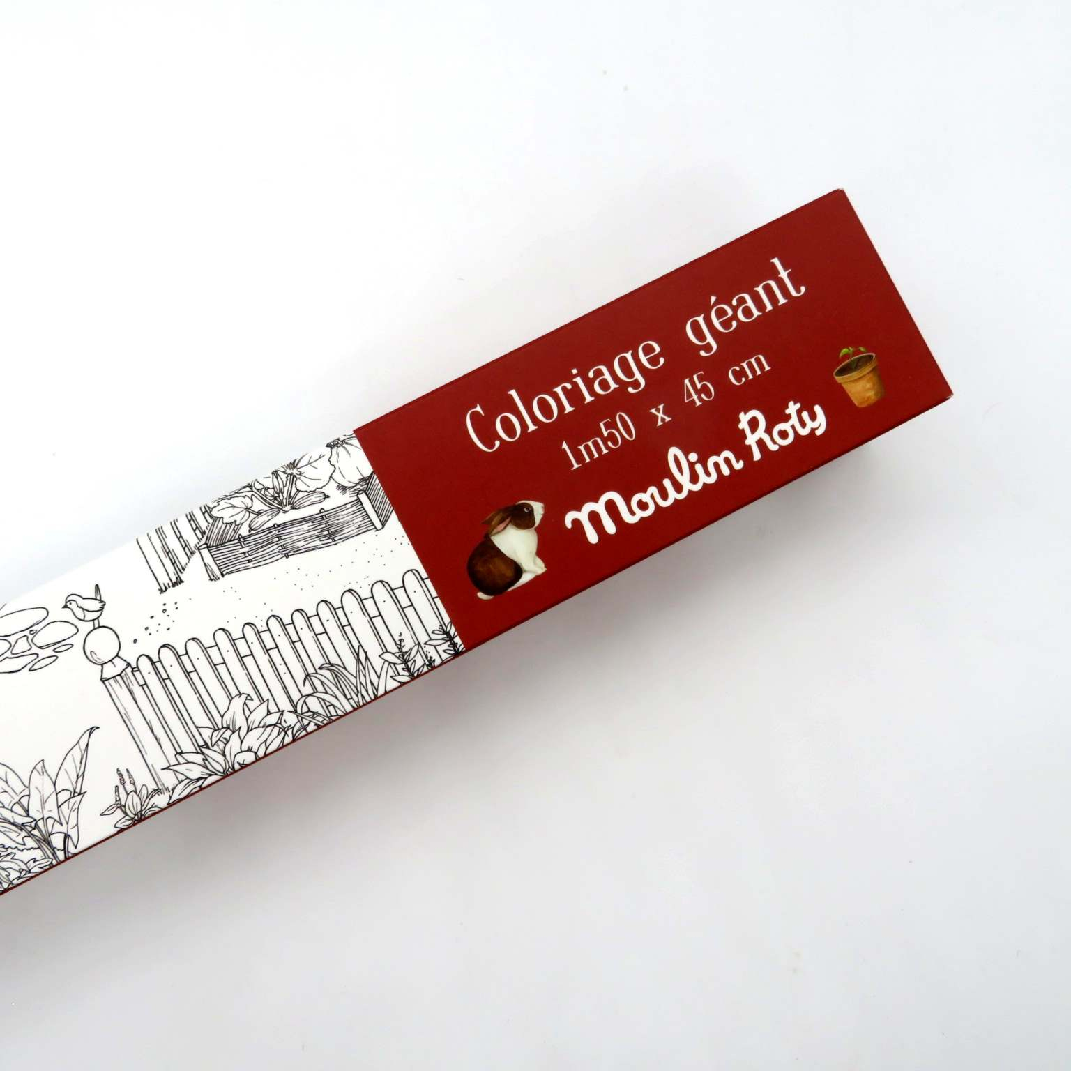 Poster il giardiniere da colorare di Moulin Roty. Un foglio di carta delle misure di 1,50mtx45cm con disegnati un giardino con l'orto, il patio, il viale, il giardino estivo e molti altri soggetti; disegno da colorare con creatività, divertendosi, da soli o in compagnia. Adatto a bambini di età superiore a 3 anni.