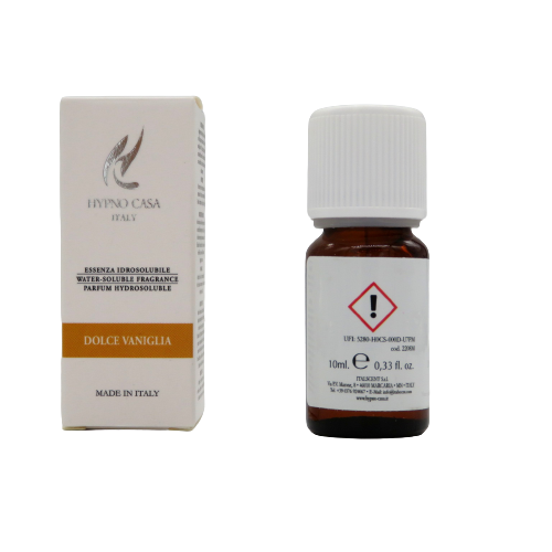 Essenza idrosolubile da 10ml, made in Italy da Hypno, contenitore in vetro trasparente e fragranza vaniglia & patchouly, note di Bergamotto, Arancia, Limone. DIMENSIONI: 6,7X2,8