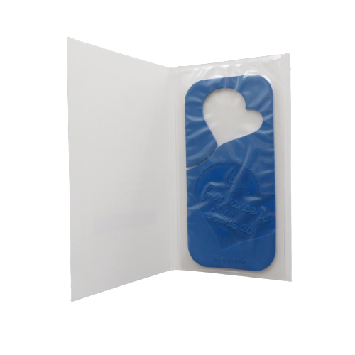 Tavoletta profumata BLU WASH in morbido silicone con foro a forma di cuore per essere appesa sul bastone dell'armadio, maniglia della porta, specchietto della macchina. Un cuore profumato in elegante confezione regalo. Prodotto fatto in Italia. DIMENSIONI: 6x13cm