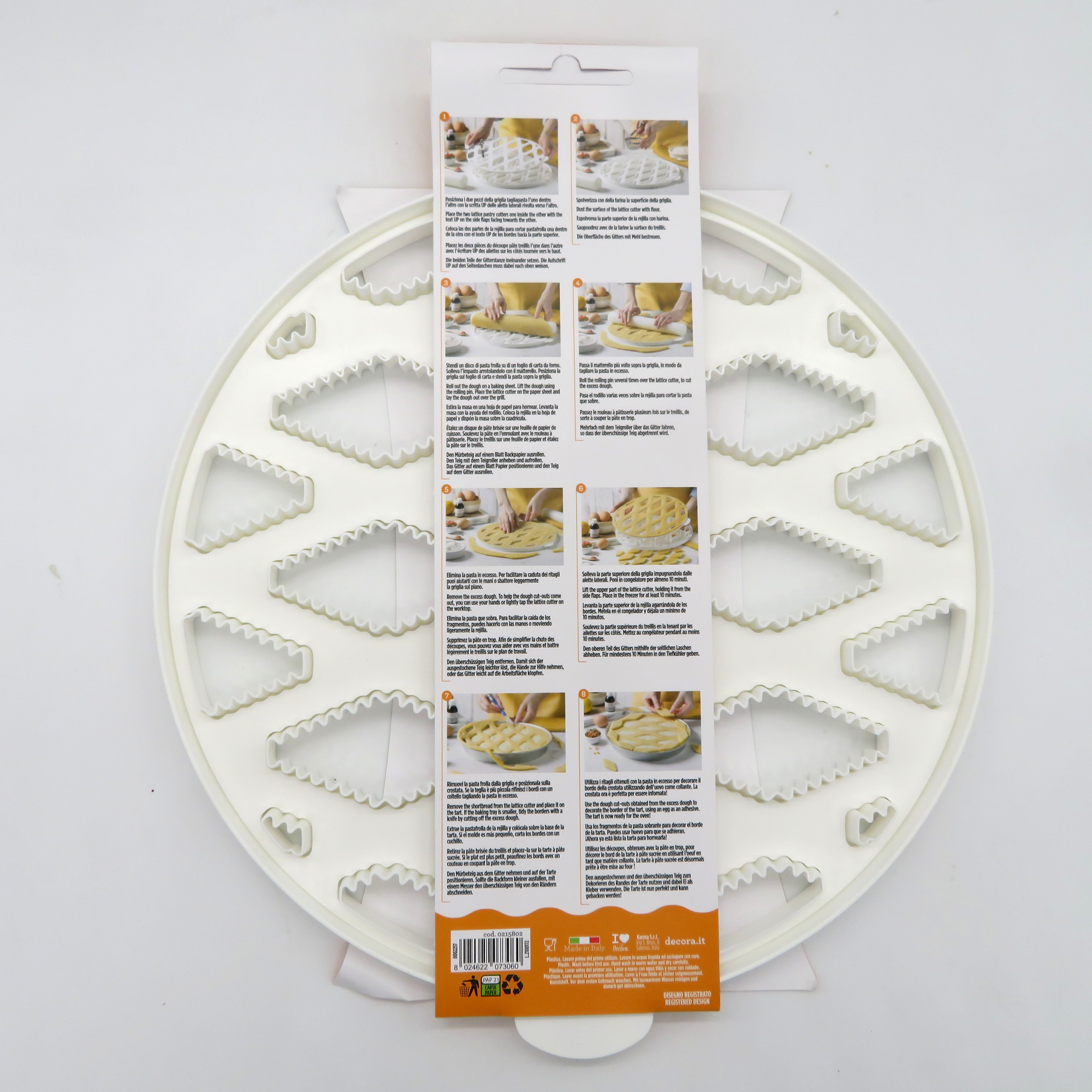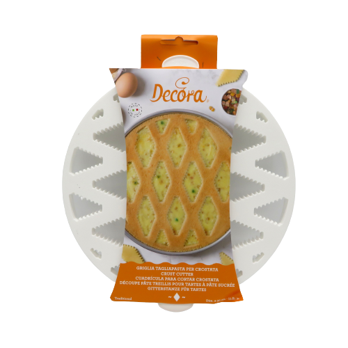 Griglia tagliapasta per crostata, diametro 30cm, ottimo per la decorazione del dolce più amato; un tocco di classe in cucina. Come funziona? rovescia il tagliapasta, dopo aver spolverizzato un pò di farina sulla superfice appoggia un disco di pasta frolla sulla superfice per poi passarci il mattarello allo scopo di ritagliare le parti in eccesso. Bastano 7/10 minuti al massimo di congelatore e la forma è pronta per essere stesa sopra la nostra crostata. Buon appetito.