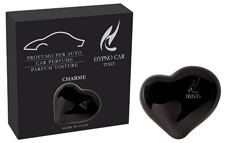 Profumatore per auto CUORE della linea Luxury di Hypno Italia. La profumazione CHARME ricorda un profumo corpo da uomo,note fresche e vibranti di Bergamotto. Il cuore dal colore NERO LUCIDO si appende facilmente alle lamelle dell'areazione dell'auto con una piccola forchettina a pinza. Questo prodotto è ricaricabile. 6 profumazioni a scelta per personalizzare il veicolo. DIMENSIONI: 6X5,5cm