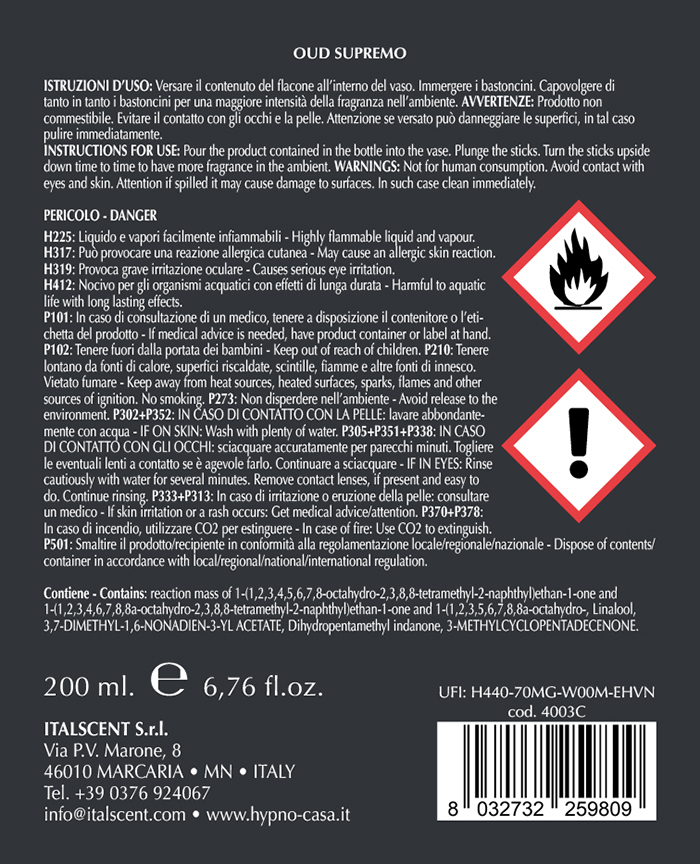 Ricarica di fragranza OUD SUPREMO per diffusori di profumo a bastoncino, 200ml, descrizione olfattiva Fiorita-Legnosa, colore rosa. Versare il contenuto del flacone all'interno del contenitore, immergere i bastoncini-fiore; mentre il fiore assorbe il profumo da se', i bastoncini debbono essere girati ogni qualche giorno per sentire sempre intensamente la fragranza diffondersi nell'ambiente. DIMENSIONE barattolo: 6x4xh13,5