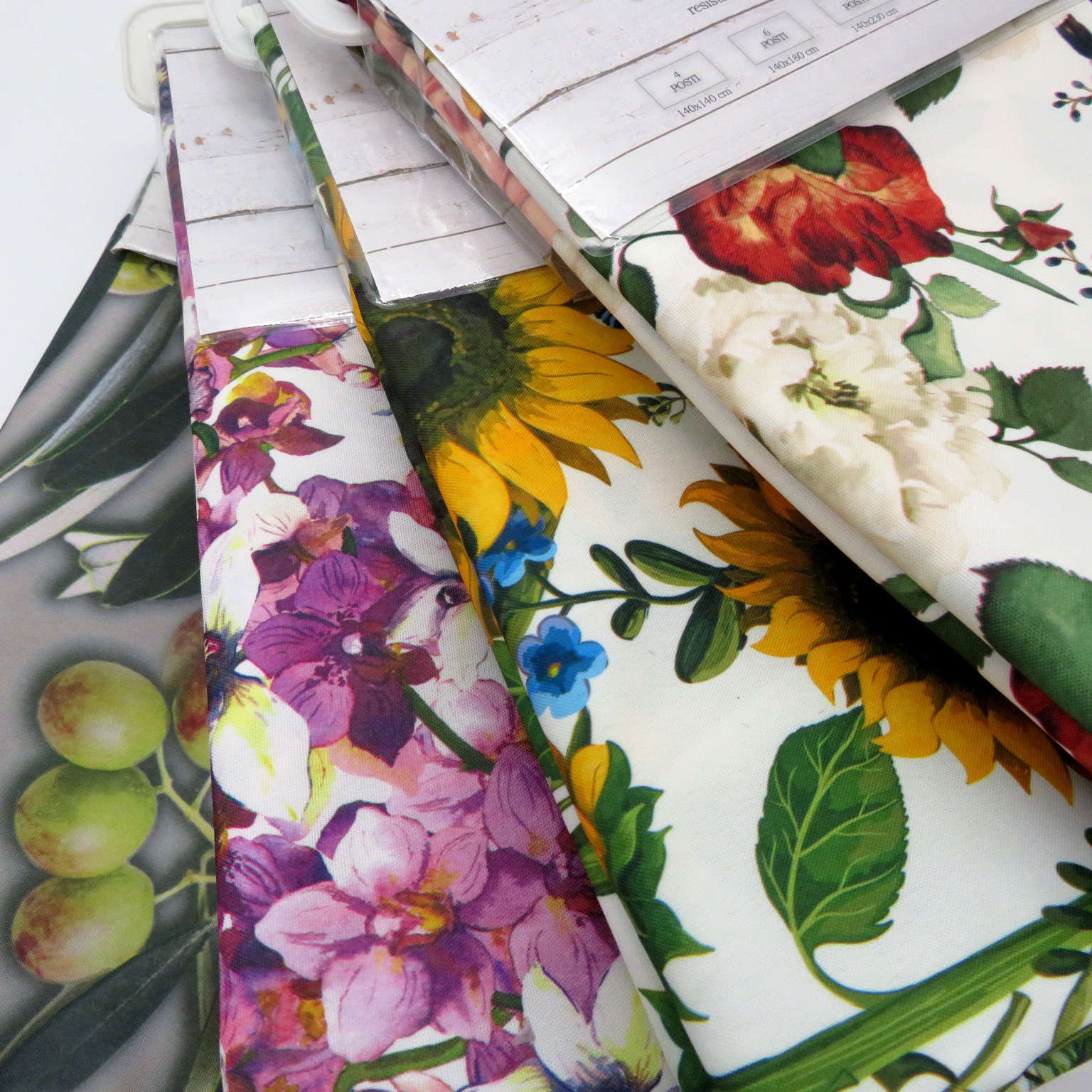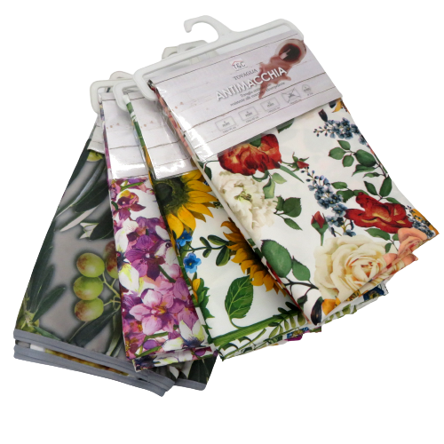 Tovaglia antimacchia 140x300 (tavolo 16 persone) con decori assortiti, Basta passare con un panno umido per togliere piccole macchie e permettere una veloce asciugatura Tovaglia lavabile in lavatrice a 30 gradi (non centrifuga, ferro da stiro). 100% poliestere. Per conoscere le disponibilità scrivere una mail a info@ideeregalohobbycasa.it
