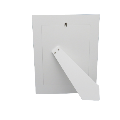 Cornice portafoto in legno laccato bianco e cornice bilaminata argento per ospitare fotografie di dimensioni 9x13 sia orizzontali che verticali, decoro martellato. Prodotto fatto in Italia. DIMENSIONI 13X18X1,5CM