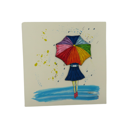 Biglietto augurale in filigrana di carta, ideati da origamo italia e costruiti con maestria nei laboratori in vietnam dove il suo titolare sostiene progetti di solidarieta con la popolazione grazie al progetto della fondazione christina noble. Il biglietto in filigrana regala emozioni, toccandolo con mano non si può non notare la manualità nell'esecuzione. Ecco il biglietto ALWAYS SMILE, una donna che cammina in una giornata di pioggia, ma il suo ombrello colorato trasmette felicità, colore, sorrisi. Ogni giorno bisogna sorridere alla vita, anche nei momenti più bruttti, cercare la nota positiva. busta color avorio. DIMENSIONI 10x10 cm