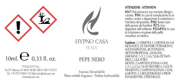 Essenza idrosolubile da 10ml, made in Italy da Hypno, contenitore in vetro trasparente e fragranza mosto d'autunno. DIMENSIONI: 6,7X2,8