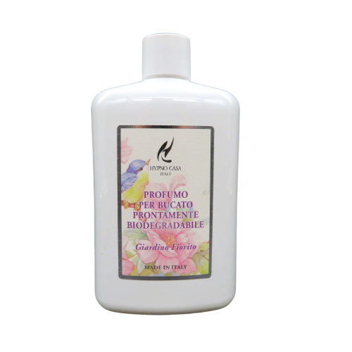 Profumo per bucato biodegradabile in confezzione risparmio 400 ml con profumazione fiori di cotone ,sentori di arancia,fiori di cotone ,magnolia,ecc basta un tappino nella vaschetta dell'ammorbidiente per rilasciare nei capi un dolce profumo delicato
