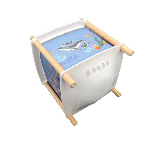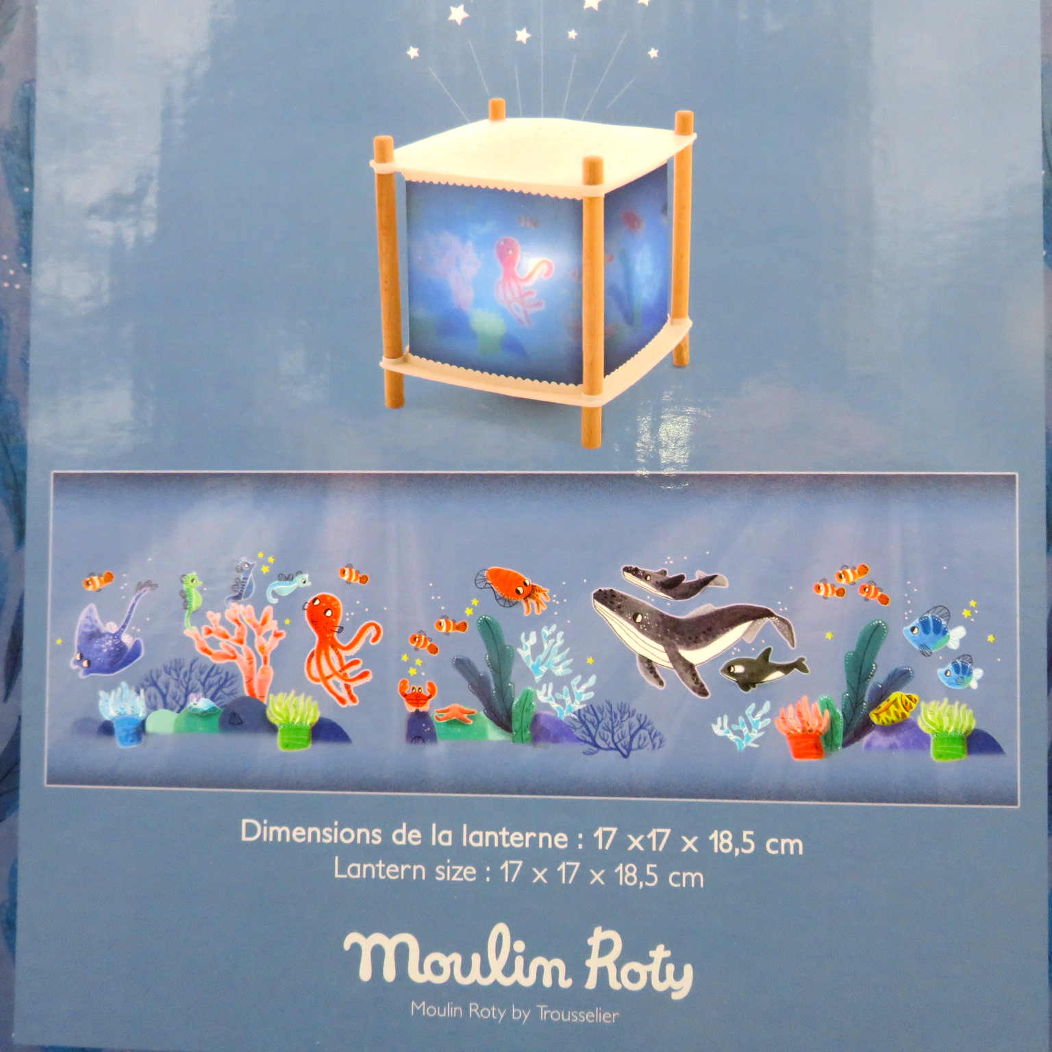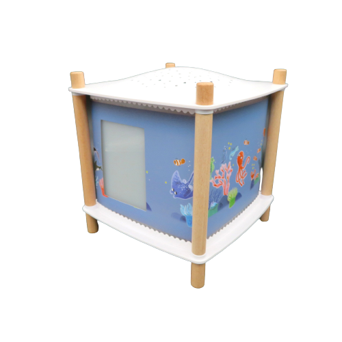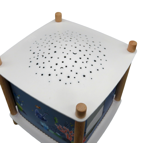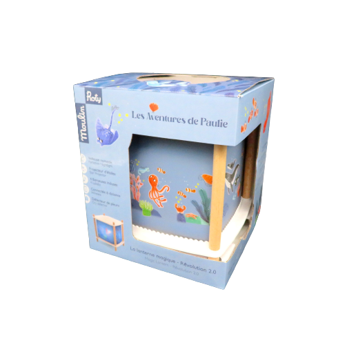 Una straordinaria lampada per il comodino della cameretta del bambino con luce notturna di veglia, proiettore di storie de 'Les Aventures de Paulie' , gli animali che vivono nell'acqua. Moulin Roty, sempre attenta al benessere del bambino propone questa lampada musicale che accompagna la nanna del bambino con 4 musiche dolci già presenti o connesse wireless con il proprio cellulare, regolabili nel volume. Dopo 30 minuti di funzionamento l'apparecchio si spegne automaticamente e grazie alla funzione rilevatore di pianto riprende a suonargli la dolce melodia accompagnandolo nuovamente nel dolce sonno. Funziona con una batteria interna ricaricabile con cavetto USB con un normale carica batterie per cellulare. La durata è calcolata in circa 1 settimana con un utilizzo di circa 30 minuti al giorno. Quando la lampada viene accesa le immagini ruotano davanti agli occhi meravigliati del bambino mentre la stanza si lluminerà di un cielo stellato grazie al suo proiettore. Musiche pre-registrate: 2 melodie de "il lago dei cigni", "Twinkle Twinkle Little Star" e suono naturale delle onde. Questo prodotto è costruito da Trousselier per Moulin Roty. DIMENSIONI: 17X17XH18,5cm