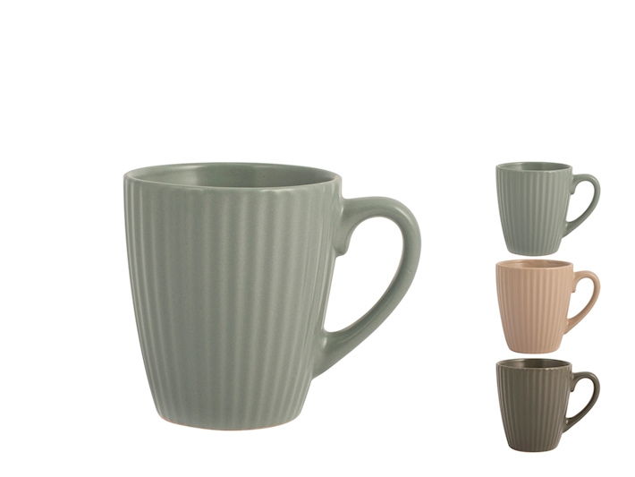 Tazza te in stoneware, un materiale resistente, grezzo, decorato con finiture verticali e colori pastello assortiti nei colori, capacità 210ml, adatte al microonde e lavabili in lavastoviglie. Le dimensioni di questa tazza d9 h7cm è interessante in quanto può essere utilizzata tanto per un caffè lungo quanto per un te ridotto.