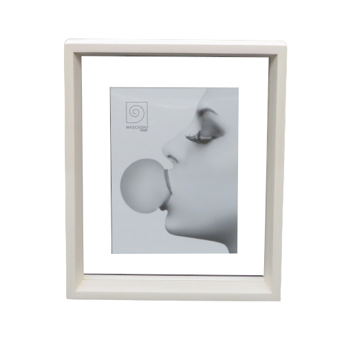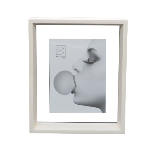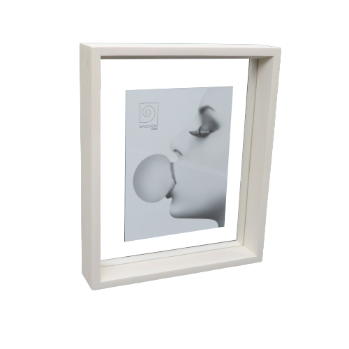 Cornice portafoto in legno e vetro con profondità del bordo di 5cm, colore avorio bianco. Il vetro posto al centro della cornice eleva e alleggerisce l'immagine che gli si pone all'interno, il formato ideale è 20x30 cm, posizionabile sia in orizzontale che in verticale, in appoggio su un mobile o appesa alla parete. DIMENSIONI: 33X43X5CM