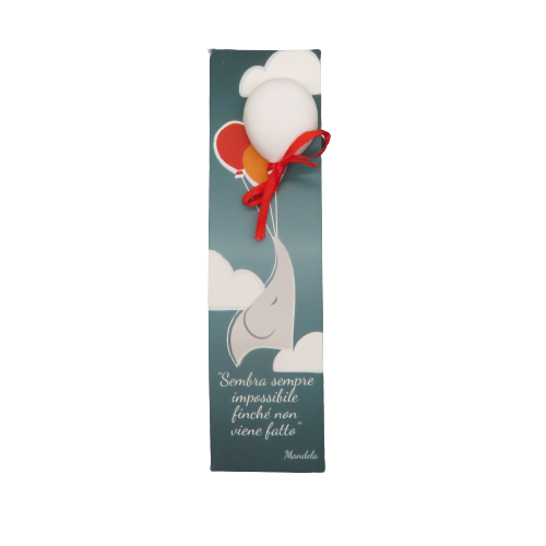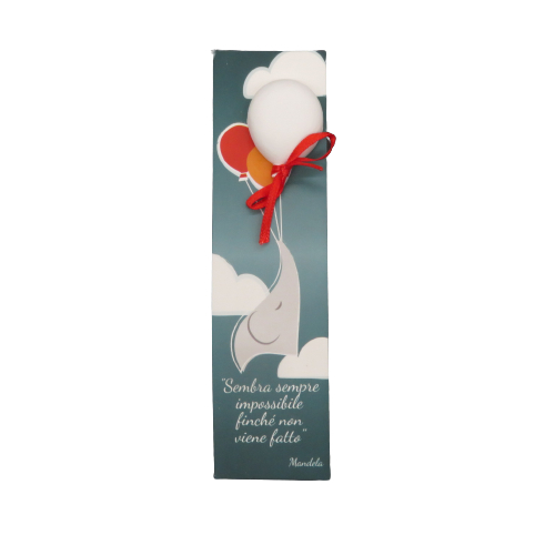 Segnalibro in cartoncino con citazione di Gandhi "Finnché porterai un sogno nel cuore non perderai mai il senso della vita", applicazione di un cuore in gessetto appeso in un festone. DIMENSIONI: 4X15cm