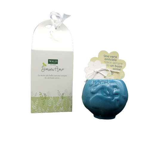 Vasetto in ceramica cahepot "globo verde ottanio" e carta piantabile. Inserisci la carta piantabile nel vasetto e ricoprila con poco terriccio, annaffia e mantieni bagnata la cartina. Nasceranno dei germogli di Coleus nano. Un idea di Wald.DIMENSIONI:9XH7,7cm