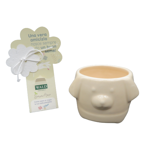 il vasetto cane nocciola della linea 'Seminiamo' di Wald è un contenitore per piantine con uno speciale fiore di carta contenente dei fiori da piantare . Il fiore è 100% cellulosa in cotone con all'interno dei semi di Coleus nano. Basta inserire il fiore nel vasetto ricoprendo con un po di terriccio e aggiungendo acqua. DIMENSIONI 10X9,8X6,8Hcm