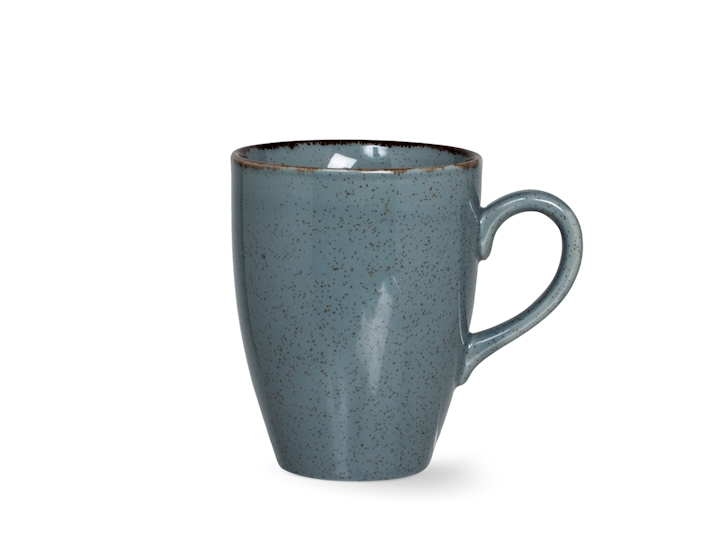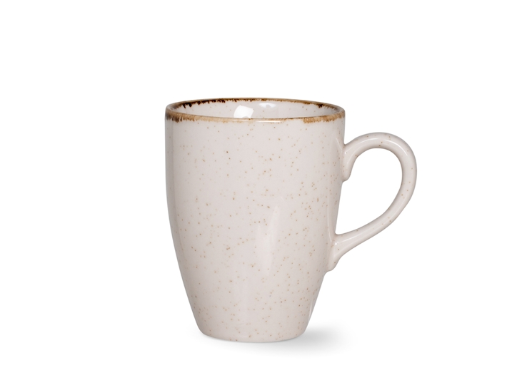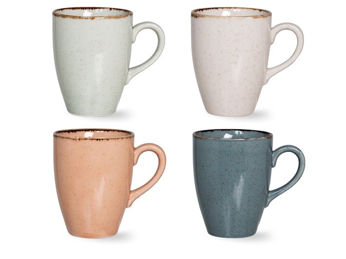 Tazza in porcellana di H&H modello Pearl colori assortiti, effetto puntinato, bordo marroncino. Adatta all'utilizzo in microonde e al lavaggio in lavastoviglie. Capacità 350ml DIMENSIONI: 8,5 h11 cm