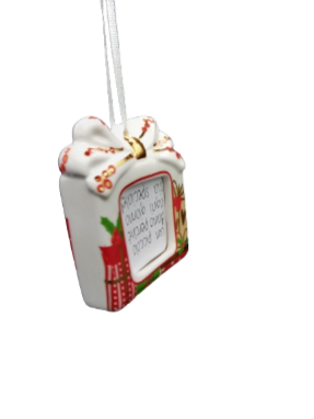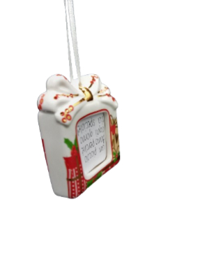 Addobbo in ceramica stivale di Natale in ceramica con porta foto o messaggio sul retro, appendibile grazie ad un laccetto. Scatola regalo elegantemente disegnata. DIMENSIONI: 7x7x2