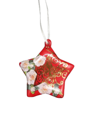 Addobbo in ceramica pacco regalo di Natale in ceramica con porta foto o messaggio sul retro, appendibile grazie ad un laccetto. Scatola regalo elegantemente disegnata. DIMENSIONI: 7x8x2