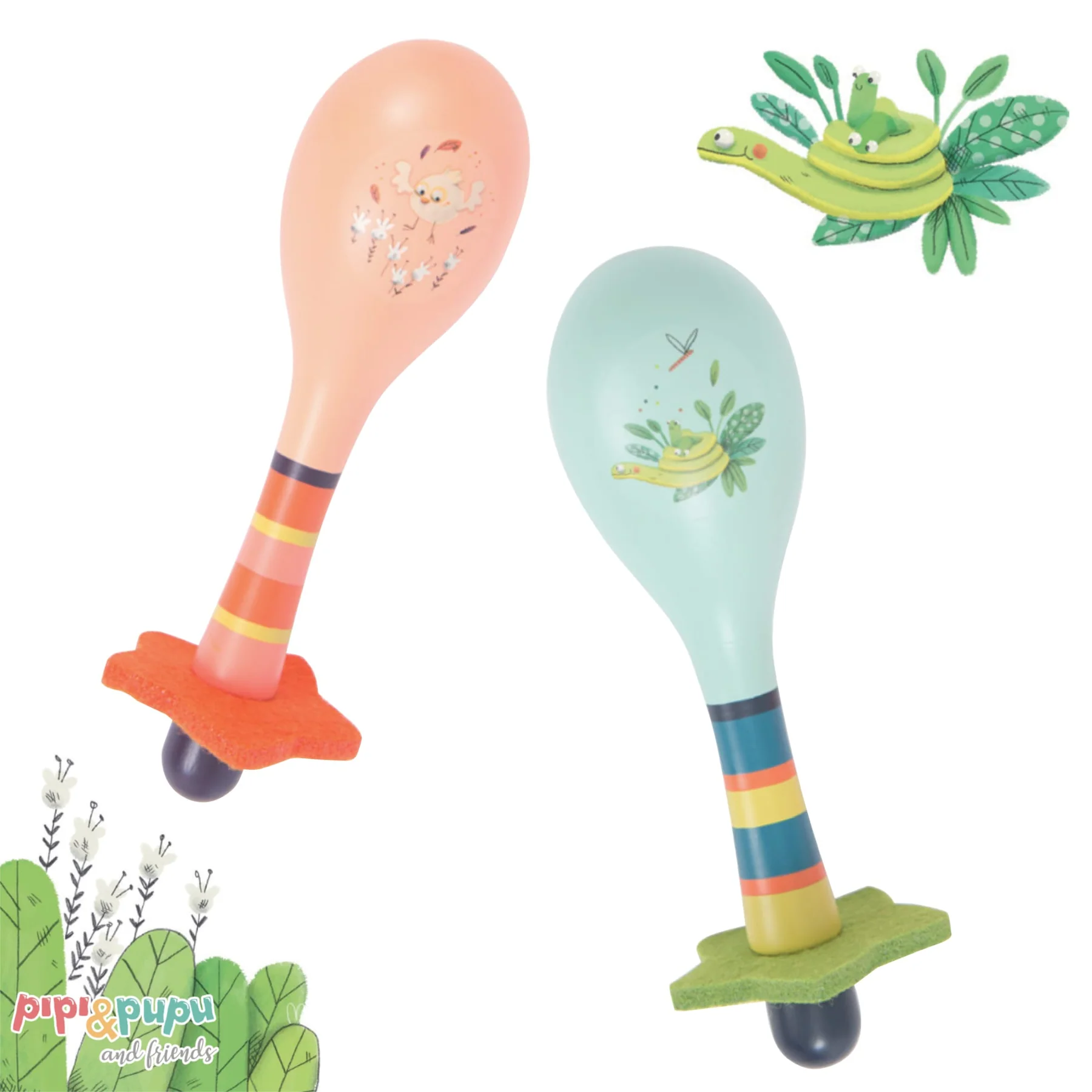 Gioco maracas della linea Dans la Jungle colore verde. DIMENSIONI 15X5